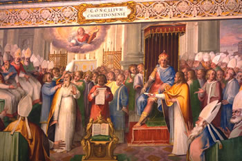 In 451 The Council of Chalcedon declared that even after the Incarnation there were two natures, united in one person, so what is said of one nature applies to the other. One is mother of the person, not just the nature. Hence, one could indeed call Mary the Mother of God. Pope Leo I offered a formula that incorporated Nestorius’s concern for a clear distinction between the two natures in Jesus; Christ is one Person, the Divine Word, in whom two natures, human and divine, are permanently united without confusion and mixture. Chalcedon was to go on to say that Jesus was “born of the Virgin Mary …according to his humanity.”